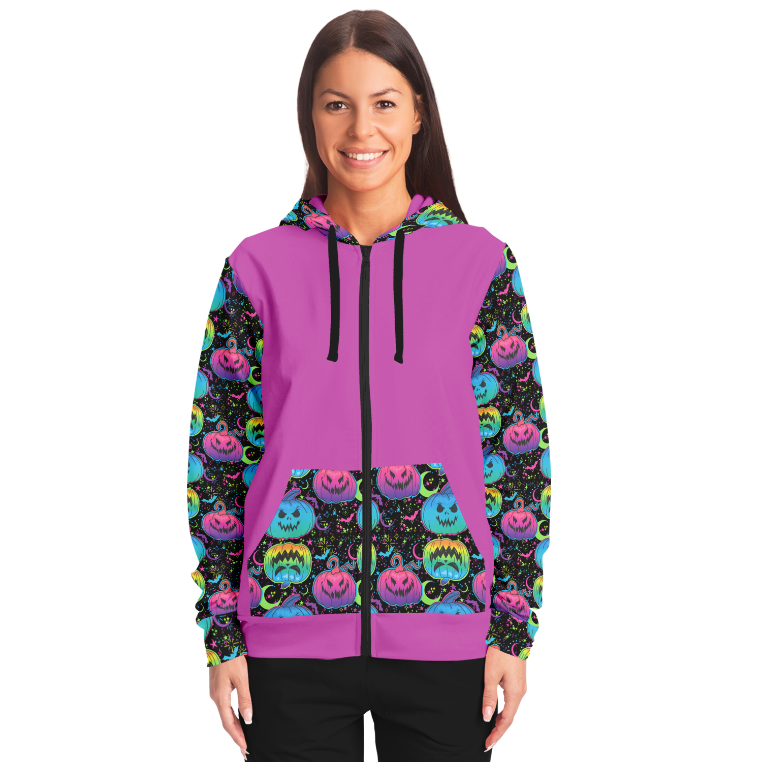 Petrifying Pumpkins Accents Fashion Zip-Up Hoodie
