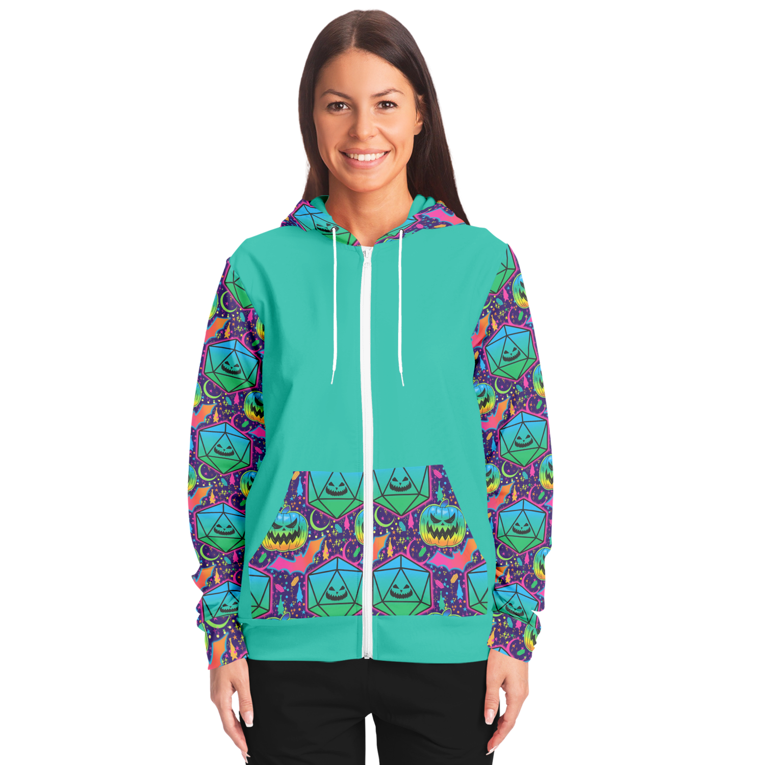 Pumpkins and Polyhedrals Accents Fashion Zip-Up Hoodie