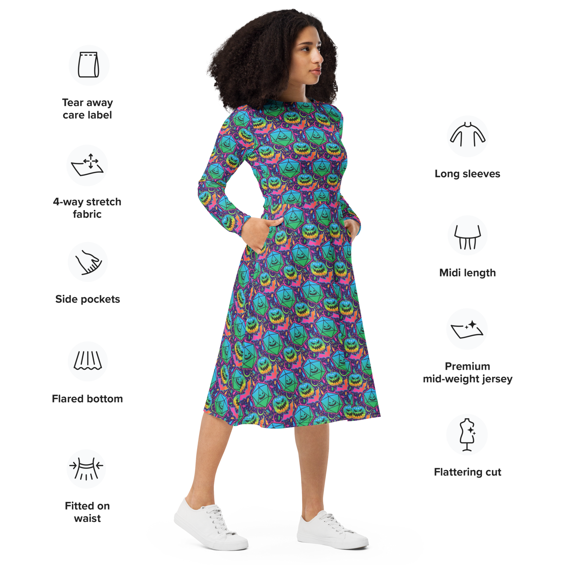 Pumpkins and Polyhedrals Long Sleeve Dress
