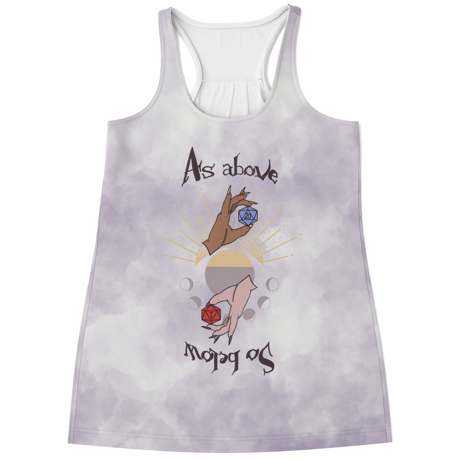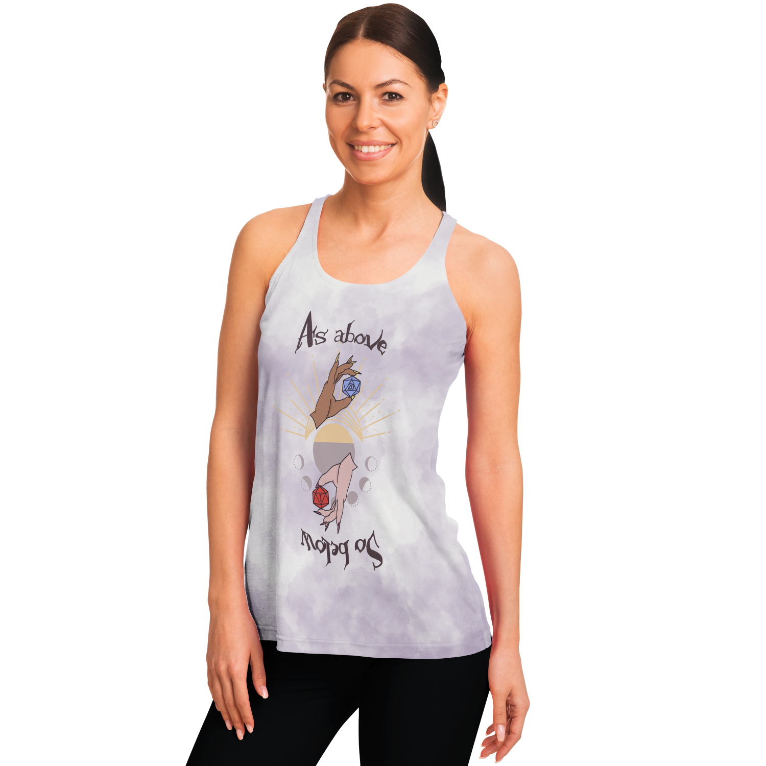 Keep it light and flowy in our all-over printed racerback tank. With a premium 100% single jersey polyester fabric with crisp colors and a nice and soft handfeel. It comes in a flattering draped silhouette, round neck and racerback.