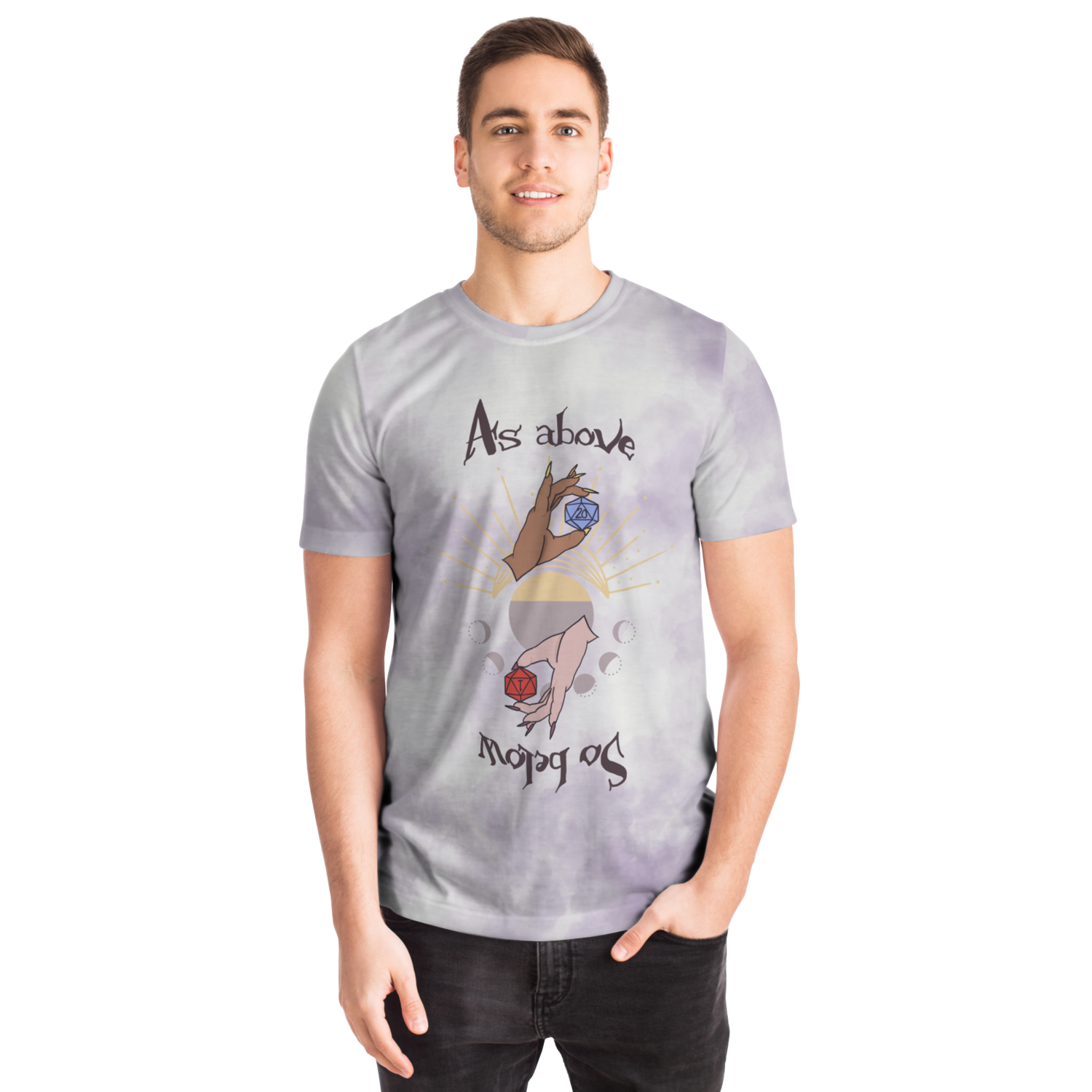 Featuring a crew neck, short sleeves, and a premium 100% polyester fabric with a cotton handfeel, and high definition printing that won't fade after washing.